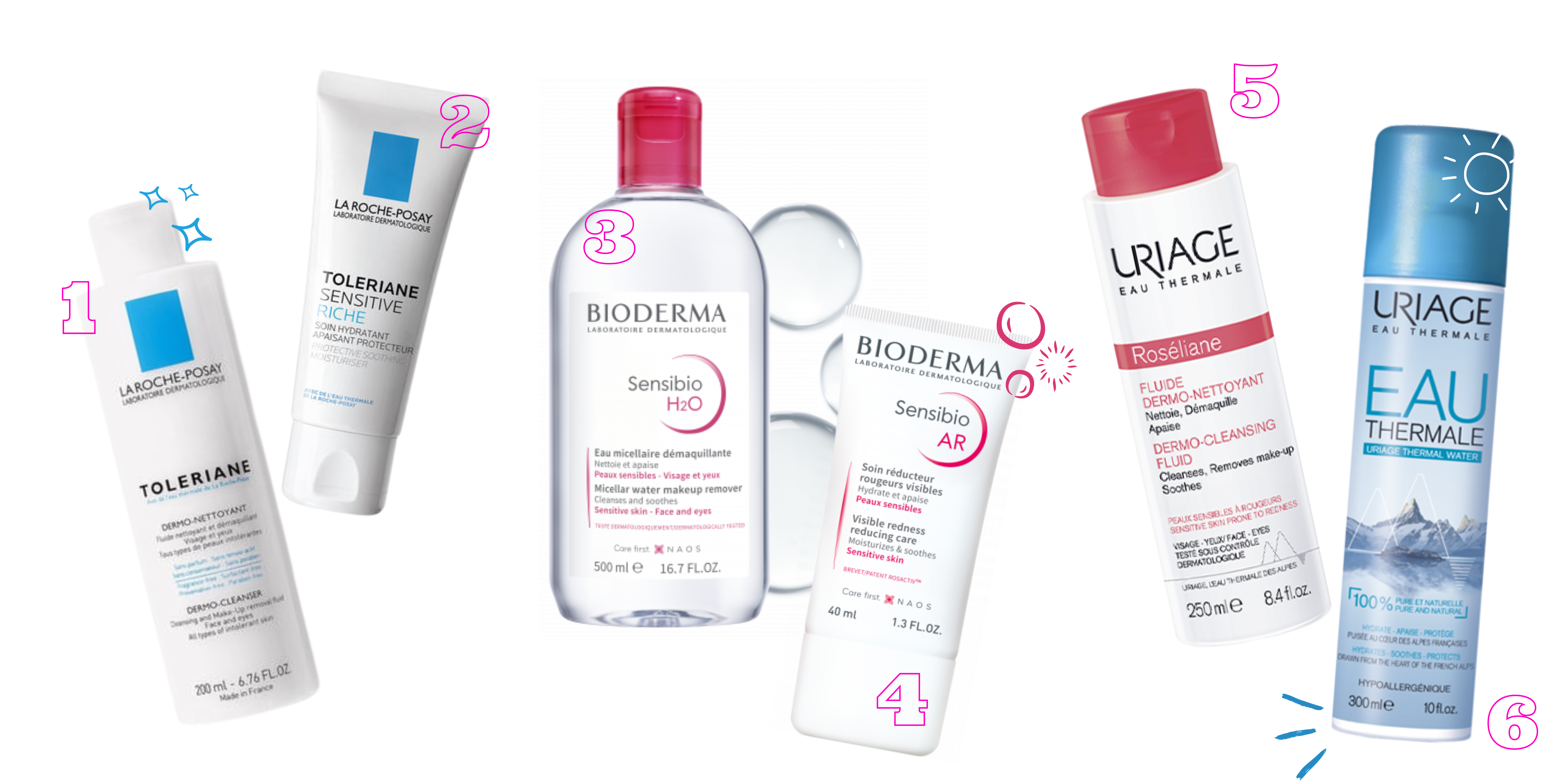 6-EAU THERMALE D'URIAGE : L’Eau Thermale d’Uriage est une eau de soin à utiliser quotidiennement, véritable cure d’oligo-éléments et de minéraux, source d’éclat pour votre peau. SPRAY HYDRATANT, APAISANT ET PROTECTEUR