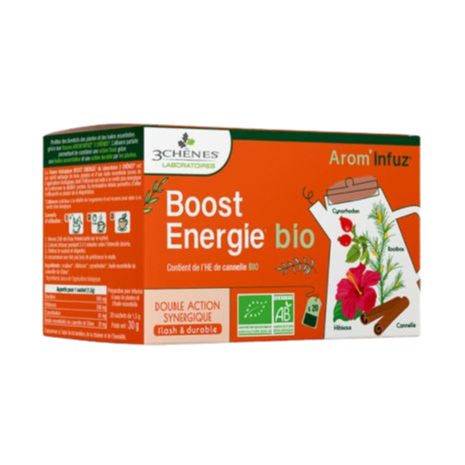 Les Trois Chênes vous propose :- Arom’Infuz Boost énergie : aide à retrouver la vitalité perdue, à se sentir plus énergétique et à réduire la fatigue.