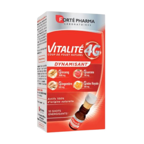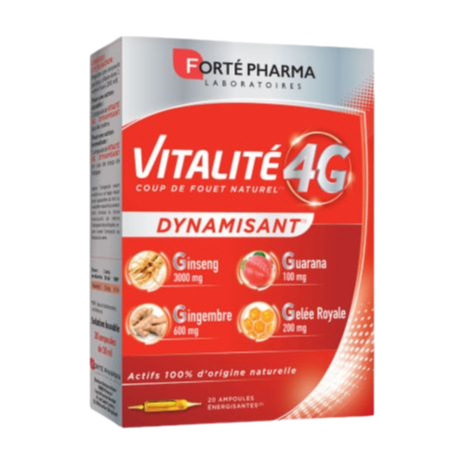 - Vitalité 4G dynamisant : aide à lutter contre la fatigue et le manque de vitalité. Il est idéal pour combattre efficacement la fatigue mentale et contribuer à la vigilance (disponible en ampoules).